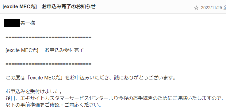 ということで、これでぼくも晴れてエキサイトMEC光ユーザーです。