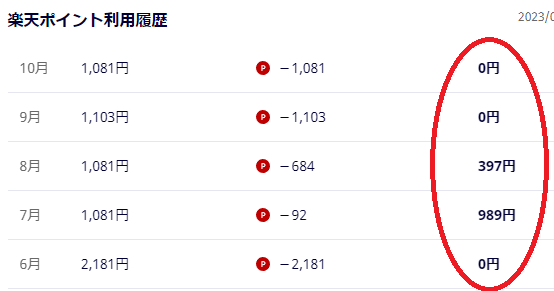 ぼくはこの通り、貯まった楽天ポイントでスマホ代の支払いをしているので、ほとんど無料で楽天モバイルを使っています。