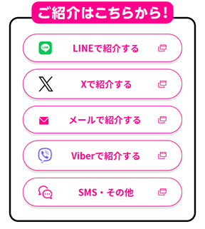 紹介コードはLINE、Twitter(X)、メール、SMSなどで簡単に送ることができます。